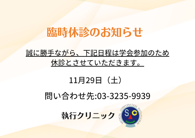 誠に勝手ながら、学会参加のため下記日程を休診とさせていただきます。